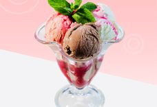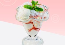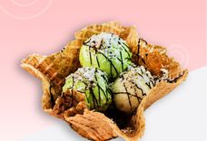 175 г • ванильное, шоколадное, клубничное мороженое, клубничный соус. Любой десерт с мороженым может подаваться в хрустящей вафельке